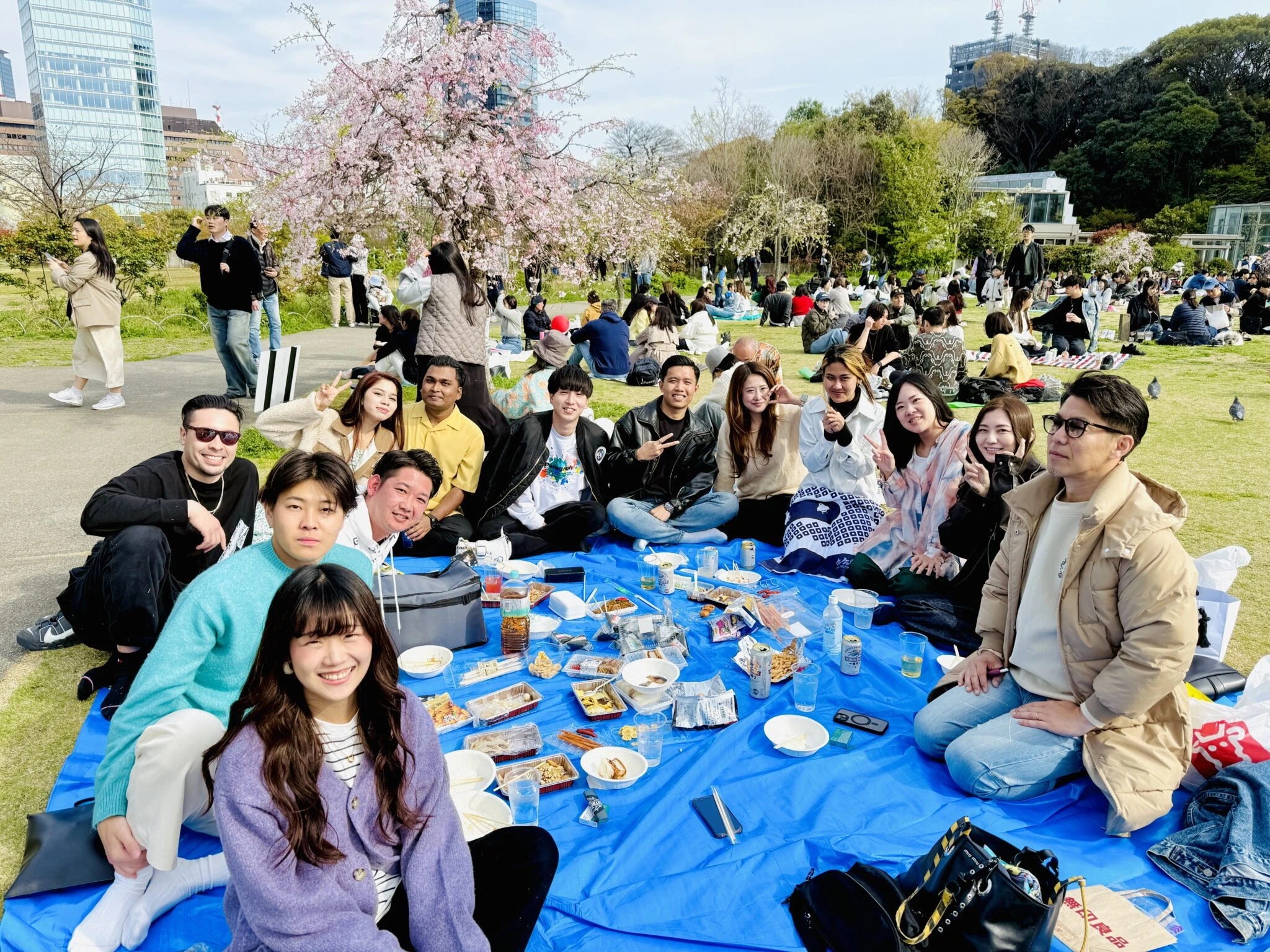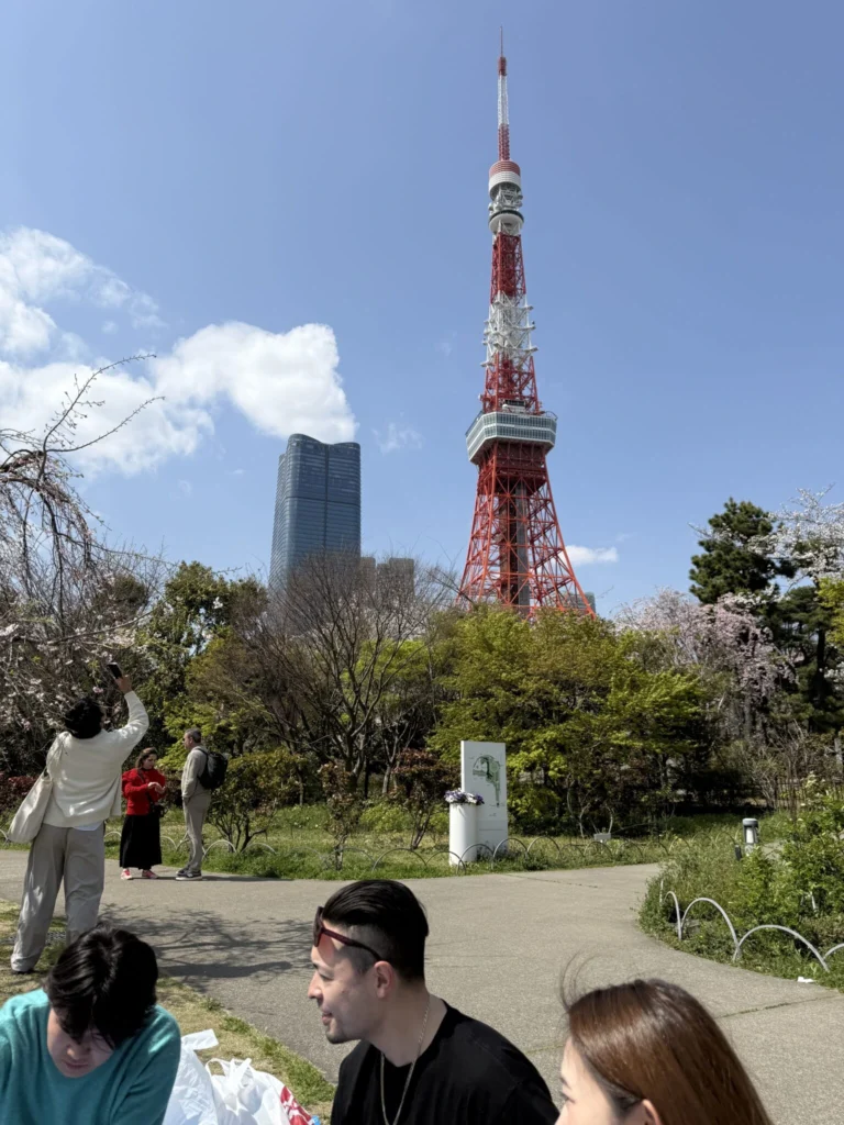 2025年4月5日(土曜日)、テクノワールドでは春の恒例行事として、東京タワーのふもとにある芝公園でお花見を行いました。